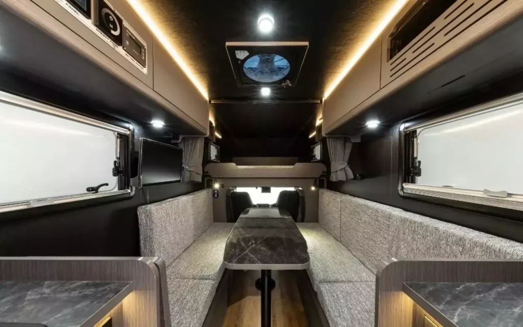 Питание всей бытовой техники обеспечивает литиевая аккумуляторная батарея. Для автономных путешествий систему можно дополнить солнечными панелями, что сделает автодом полностью независимым от розеток.